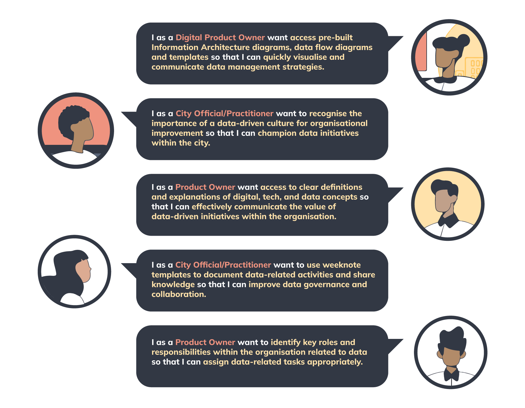 Starting with the former question, we defined our long-term primary user to be a city practitioner who can use the toolkit to start developing a data strategy in their context. However, to realise this ultimate goal, we needed a short-term primary user who could help develop an alpha-version of the toolkit.