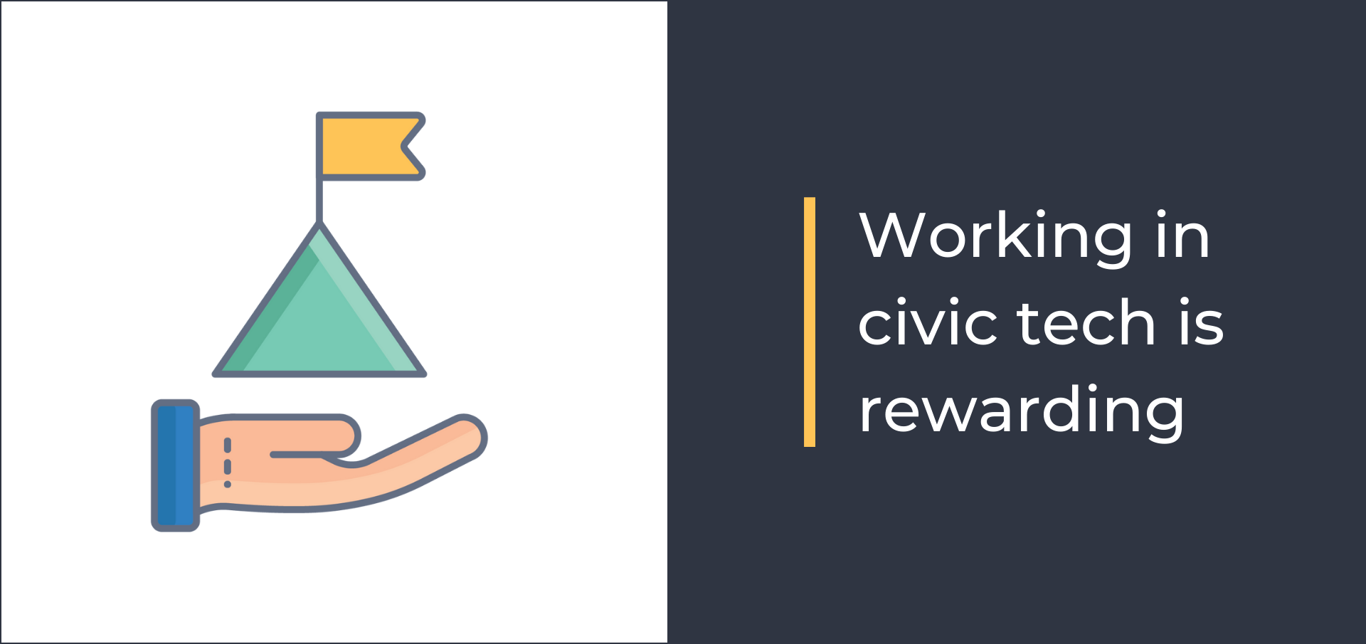 It is easy to be consumed, of course, by the tangible metrics that showcase the value of the products you develop in this space such as the number of visitors daily. However, the most rewarding impacts you have in this space are all intangible to some extent; the efficiency you improve by developing a service delivery dashboard or the trust people gain by knowing about who they can vote for. You could possibly never measure the true social impact that you are making through civic tech.