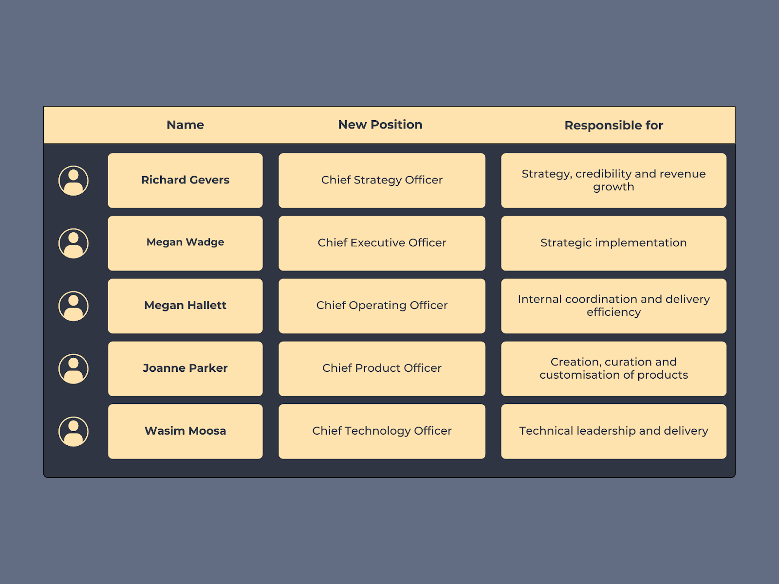 To step into the new CEO role, Megan Wadge has transitioned out of her previous position as Chief Operating Officer (COO). The COO role has been redefined, with Megan Hallet stepping in to take over. Our Strategic Management Team will be complete by the end of 2024, ready to lead OCL into this exciting new phase of growth, and will be structured as follows: