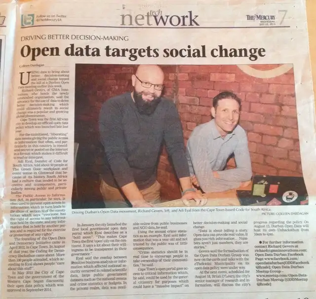 Whether you discovered this site by chance, or have some idea of what Open Data Durban is about, I thought it would be good to give the “story so far”. Open Data Durban was born out of a deep frustration with the way we as a country, and particularly as a city, are progressing. This is not to criticise government, it is a general statement about a need for change that should resonate with citizens, government, the media, civil society, and business.